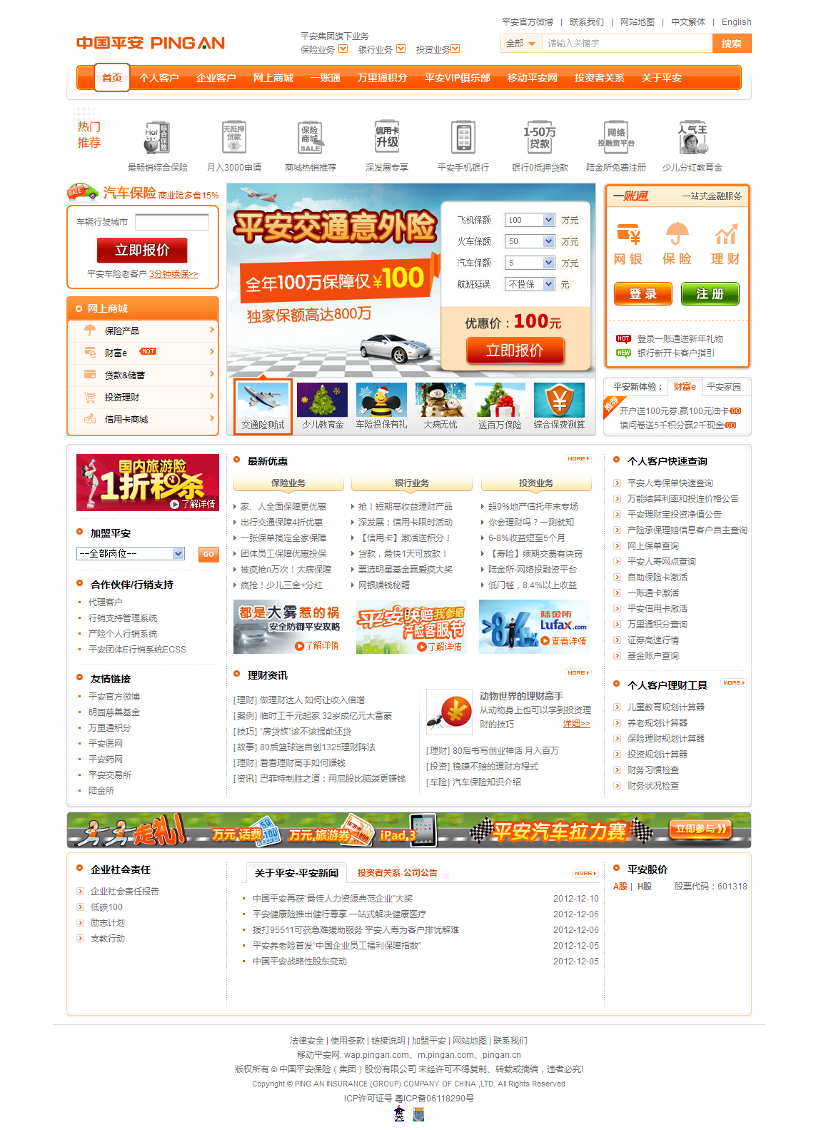 中國平安保險(集團)股份有限公司(以下簡(jiǎn)稱(chēng)“中國平安”,“公司”,“集團”)于1988年誕生于深圳蛇口,是中國第一家股份制保險企業(yè),至今已發(fā)展成 為融保險、銀行、投資等金融業(yè)務(wù)為一體的整合、緊密、多元的綜合金融服務(wù)集團。