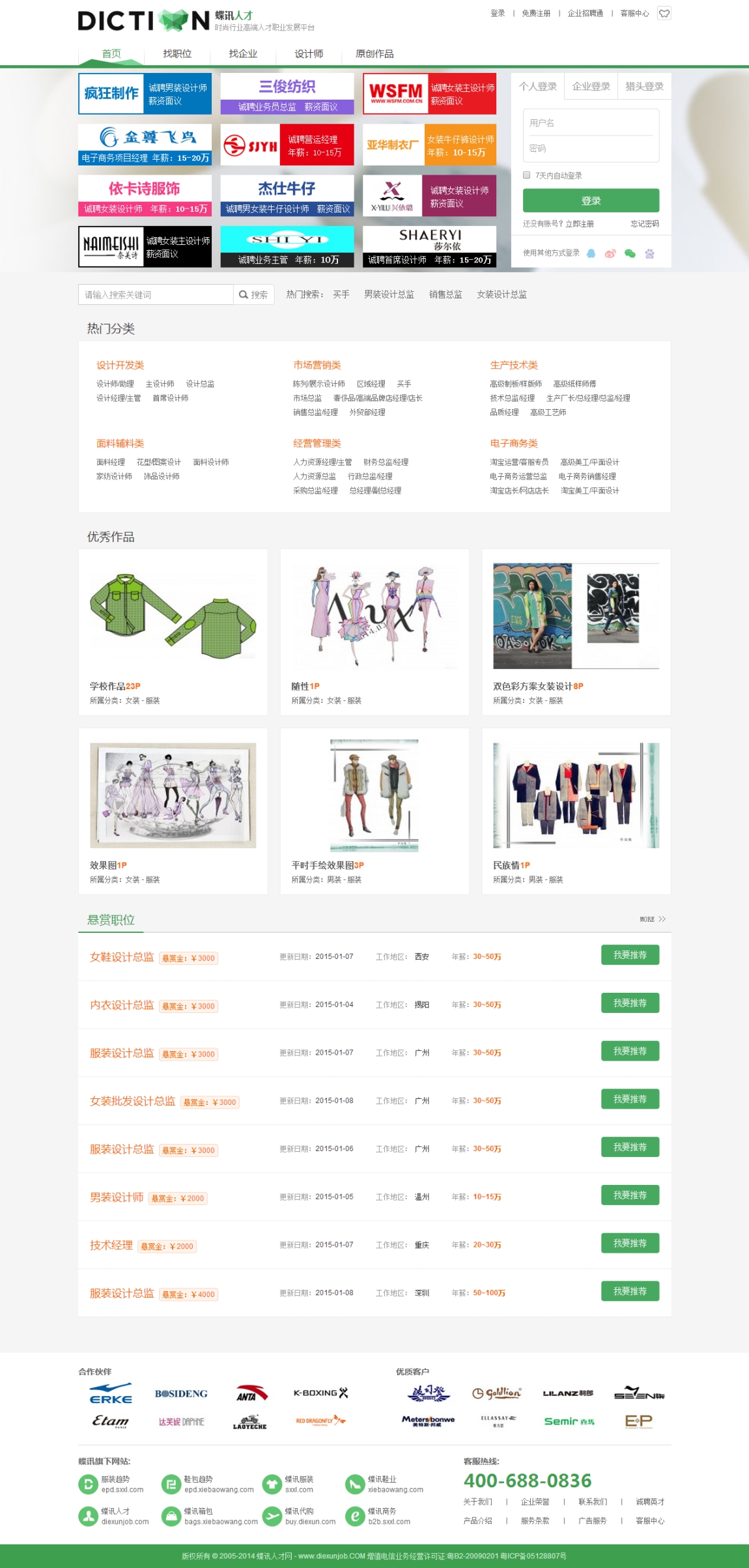 蝶訊人才網(wǎng)是蝶訊網(wǎng)2013年全力打造、重點(diǎn)推出的又一個(gè)面向服裝、鞋包等行業(yè)領(lǐng)域的專(zhuān)業(yè)化人才求職、招聘平臺。 蝶訊人才網(wǎng)面向中國時(shí)尚設計行業(yè)企業(yè),提供線(xiàn)上招聘和線(xiàn)下高端人才推薦服務(wù),提供完整全面的企業(yè)人才招聘解決方案,為企業(yè)輸出國內、國際的高端專(zhuān)業(yè)人才。